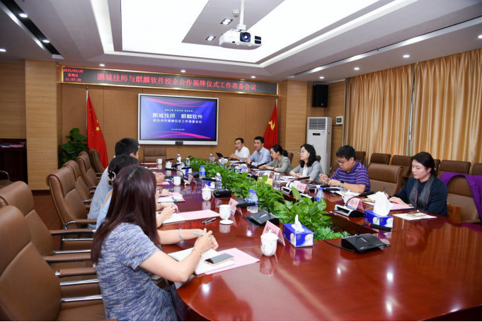 5月26日,我校与麒麟软件校企合作揭牌仪式准备会议在福强校区综合楼七楼会议室召开。麒麟软件高级副总裁、教育发展中心总经理张娜、副总经理杭斯乔,学校党委书记、校长刘颖校长及教务处、校办、文商学院等相关负责人出席会议。