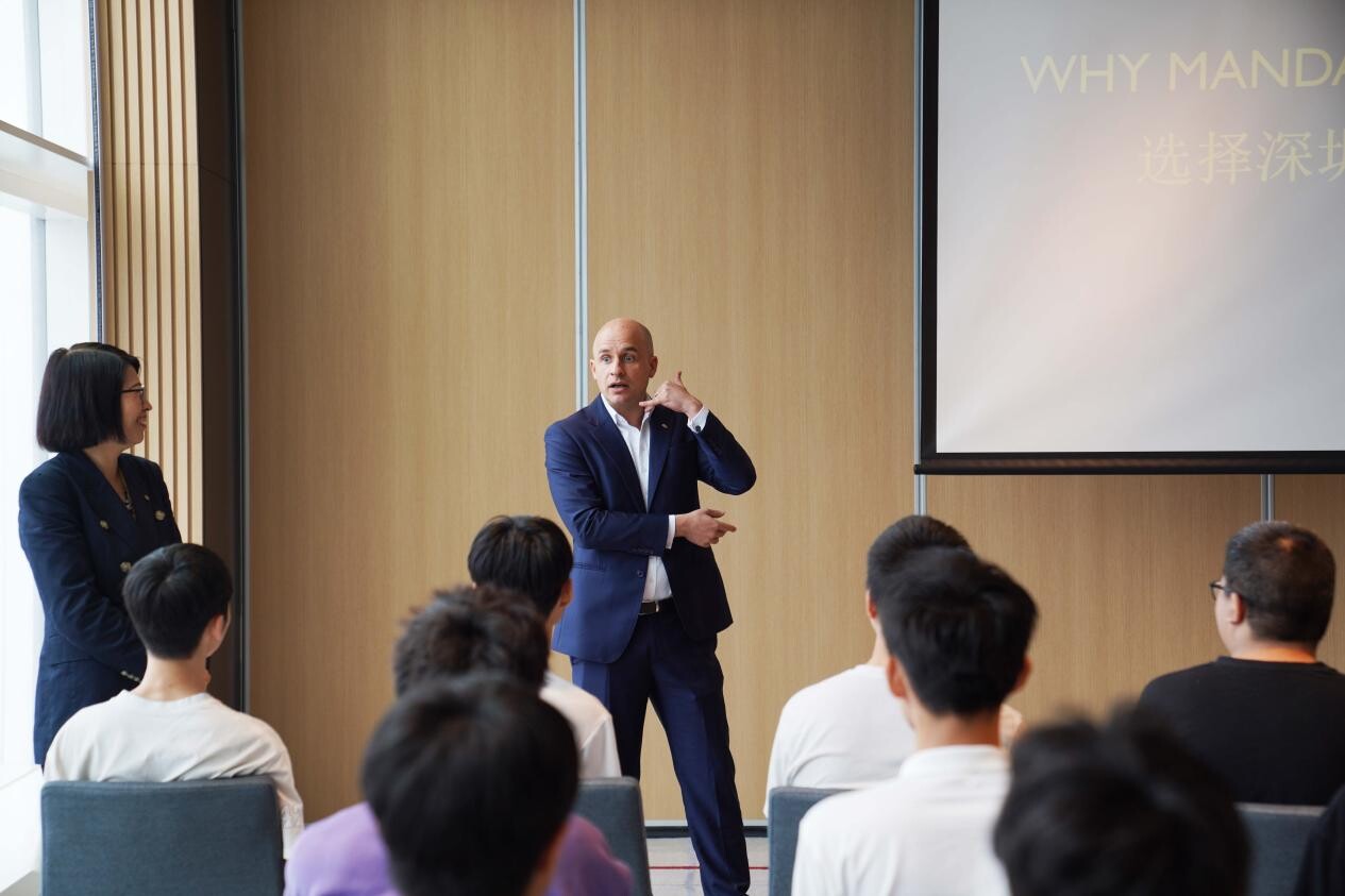 到达酒店后,酒店人才及文化部经理姚嘉进对我校师生的到来表示欢迎,餐饮行政助理经理 汤沫维Thomas Maier为学子们详细介绍了深圳文华东方酒店的企业背景、企业实力、经营理念、岗位需求、福利待遇、管理制度、培训体系及工作环境等内容,同时对我校的学子同学们今后在餐饮行业的职业发展提出了宝贵的建议和指导,让学子们指导在学校应该怎样要求自己,如何成为一名合格的职场人。
