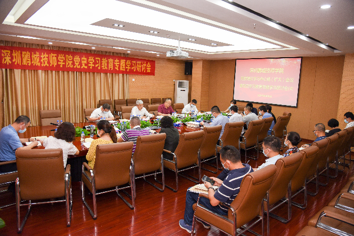 深圳鹏城技师学院党委于2021年6月29日、6月30日召开党史学习教育专题学习研讨会(第四、五期)。全体校领导(党委委员)、党史学习教育督导组成员、纪委委员、各党支部书记、各部门主要负责人参加会议。