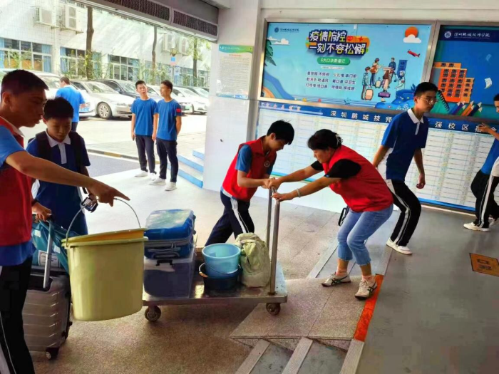 23级新媒体G5班杨晨同学说:“进入深圳鹏城技师学院的第一天,我感受到了满满的温暖和爱!穿红马甲的老师热心地帮我拿行李,引导我办理入住......爱上鹏城技师,爱上红马甲,原来就是这么容易!”