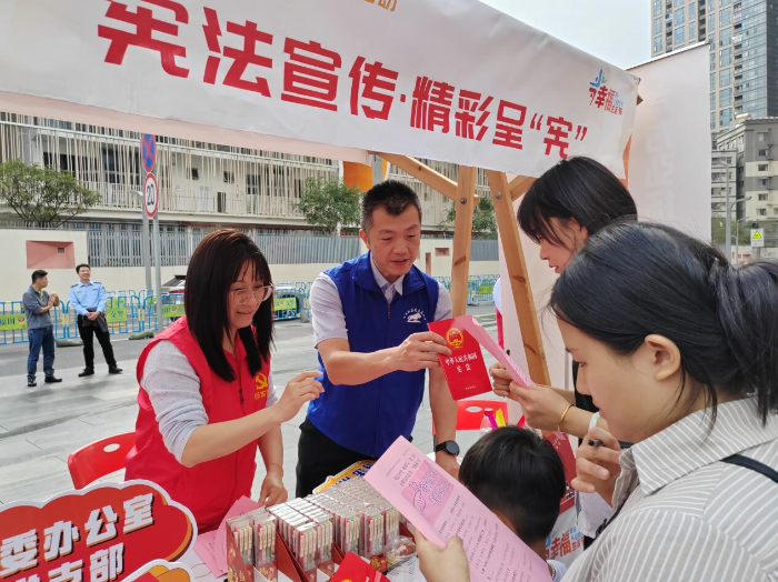 为深入学习贯彻习近平新时代中国特色社会主义思想,大力弘扬宪法精神和社会主义法治精神,进一步营造尊法、学法、守法、用法的良好氛围,推动党员下社区到一线办实事,近日,福田区沙头街道以宪法宣传为主题的“党员服务市集”活动在上沙社区中洲湾广场举办,学校50余名党员干部和学生团员参与此次活动。