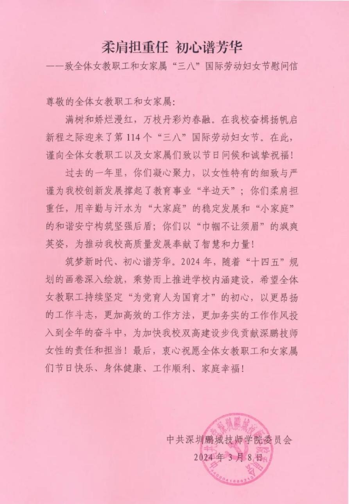 仵博同志充分肯定了女老师们在教育事业发展中所发挥的重要作用和取得的优异成绩,高度评价了“她们”在平凡工作岗位上踏实进取、敬业奉献的精神,勉励大家在今后工作中继续以饱满的工作热情、积极向上的精神风貌和扎实的工作作风,为学校双高建设作出更多贡献。