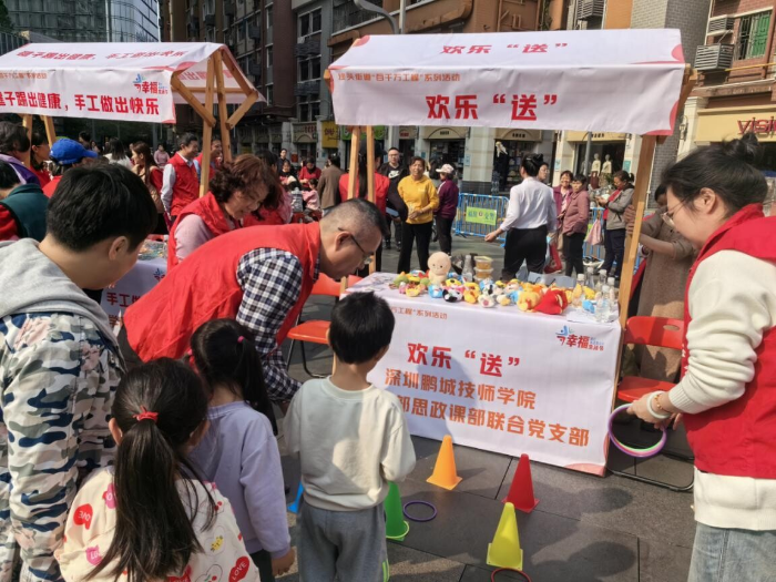 公共课部思政课部联合党支部在活动现场设置“套圈”游戏,以“广泛参与,形式有趣,健康向上,勤俭节约”为原则,给“套圈”成功的居民赠送纪念品。“套中了!套中了!”现场不时响起阵阵掌声,欢声笑语不断,热闹的氛围感染了社区居民,大家尽情享受着趣味活动带来的快乐。
