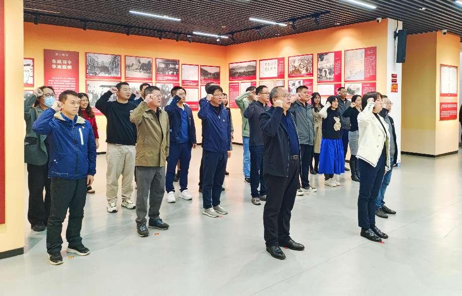随后,在孙从争同志的带领下,新发展党员杨洁、崔平两位同志庄严地进行了入党宣誓,全体党员共同重温了入党誓词。铿锵有力的誓言在纪念馆上空回荡,每一个字都饱含着党员们对党的忠诚与热爱,对初心使命的坚守与担当。宣誓不仅是一种仪式,更是一次心灵的洗礼,让党员们在回溯入党初心之际,进一步筑牢了为党的教育事业不懈奋斗的坚定信念。
