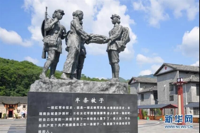 在湖南汝城县沙洲村,三名女红军借宿徐解秀老人家中,临走时,把自己仅有的一床被子剪下一半给老人留下了。老人说,什么是共产党?共产党就是自己有一条被子,也要剪下半条给老百姓的人。同人民风雨同舟、血脉相通、生死与共,是中国共产党和红军取得长征胜利的根本保证,也是我们战胜一切困难和风险的根本保证。
