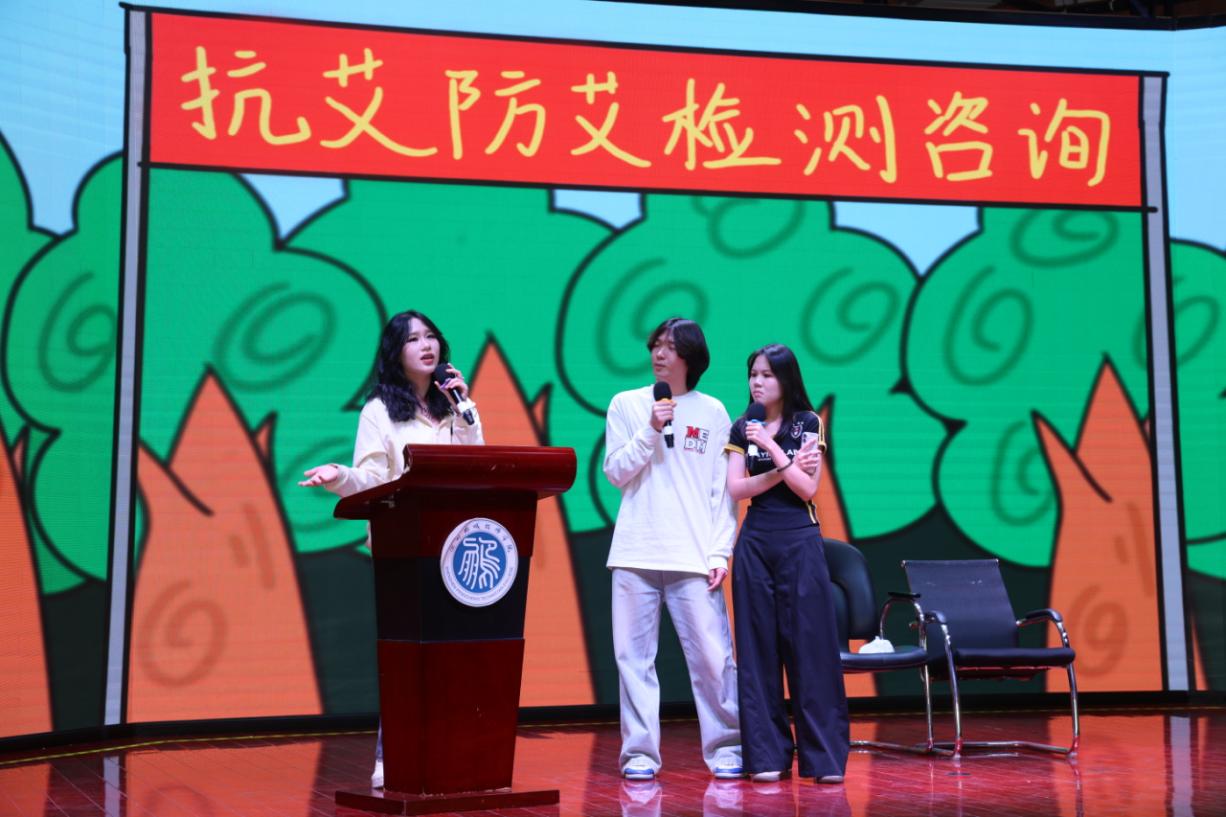 本次活动通过场景化设计、互动式体验,打破传统单向灌输的防艾宣教模式,围绕青少年学习生活实际与成长需求,构建“沉浸式体验+专业化讲解+常态化延伸”的立体宣教体系。活动现场聚焦校园高频场景,以防艾舞台剧《青春防线》为切入点,通过还原宿舍共用个人用品、校园社交认知误区等真实场景,将艾滋病传播途径、防护要点等专业知识融入剧情演绎,让抽象的健康知识转化为具象的情景认知,帮助学生直观理解“日常接触无风险、科学防护是关键”的防护要点,有效消除对艾滋病感染者的误解与隔阂。