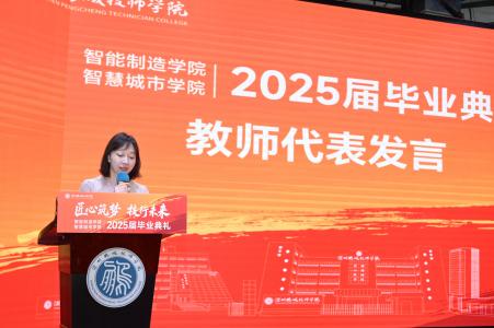 游佳、王伟治、唐莉、魏强、郁广德、罗蕾、马彬婷、旷维亮等教师代表深情寄语毕业生,字里行间饱含着对技能传承的深沉期许,他们勉励毕业生们以扎实的技术本领筑牢职业发展根基,以创新突破的思维勇立时代发展潮头;始终秉持精益求精的工匠精神,主动投身技能报国实践,积极担当时代赋予的使命任务;既要勇做新技术、新领域的开拓者,又要当好工匠精神的坚定传承者,在推进制造强国建设进程中,奋力书写技报国的时代答卷,让技能报国的精神火炬在新征程上永续传递。