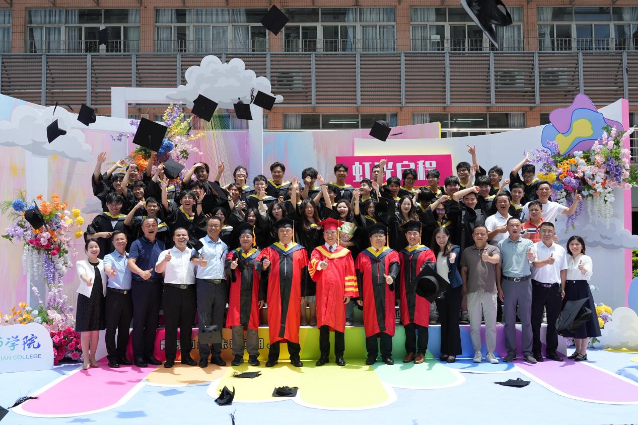 “今朝花开胜往昔,料得明日花更红。”当盛夏蝉鸣穿透校园枝叶,深圳鹏城技师学院毕业典礼盛大启幕。898名毕业生秉持“淬技成器,逐光远航”之志,为校园淬炼岁月画上句点,毅然迈向广阔天地。