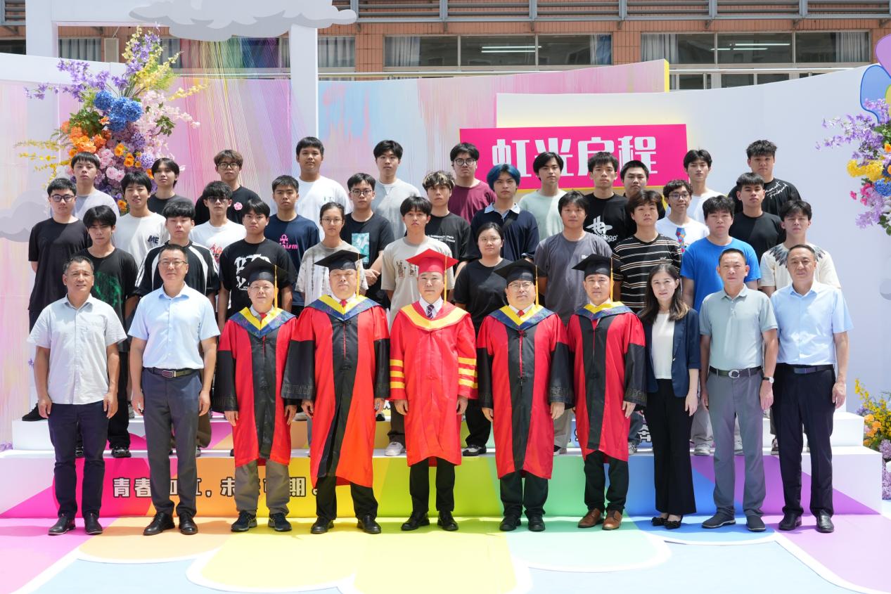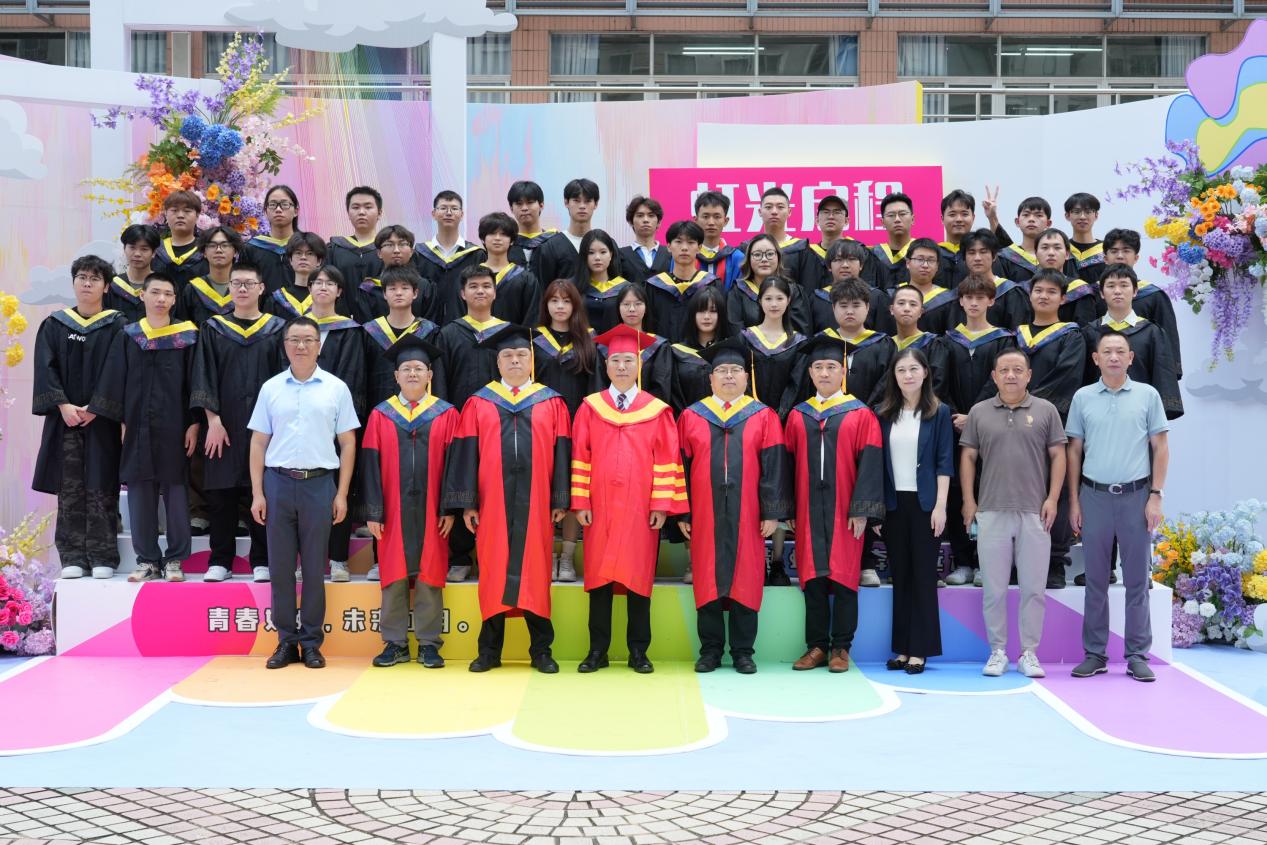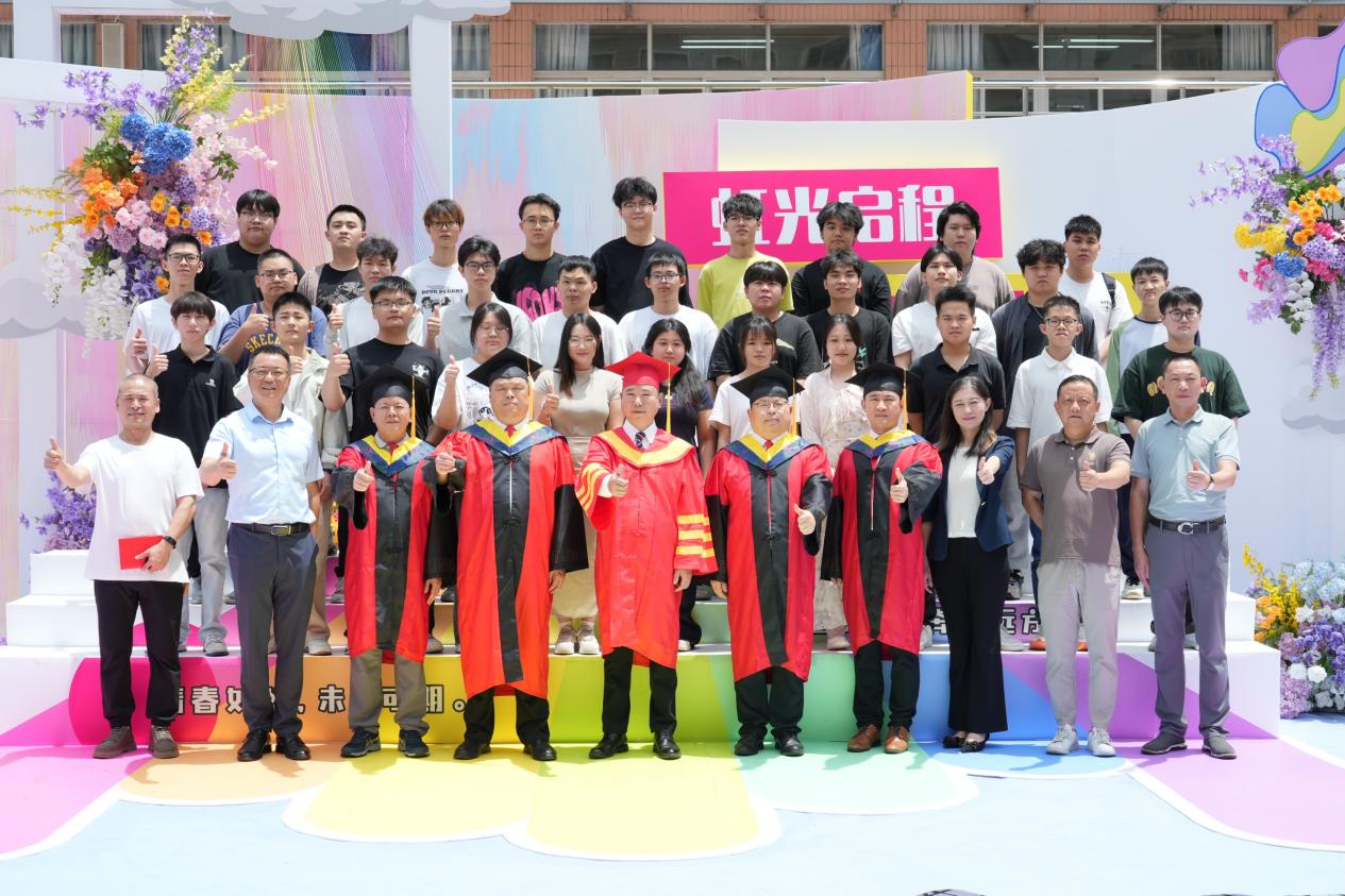 典礼现场,大屏幕上滚动播放的校园生活影像化身“时光胶囊”,将这几年的青春岁月娓娓道来。晨雾中奔赴教室的匆匆脚步、深夜实训室里执着钻研的专注身影、技能竞赛时全神贯注的坚定眼神、团队协作攻克难关后的欢呼雀跃…… 每一帧画面都凝结着奋斗的汗水与成长的印记,无声诉说着同学们在技能淬炼之路上的拼搏与坚守。这些镌刻着理想与情怀的珍贵片段,将穿越时光长河,继续见证他们坚守初心、逐梦前行的精彩征程。