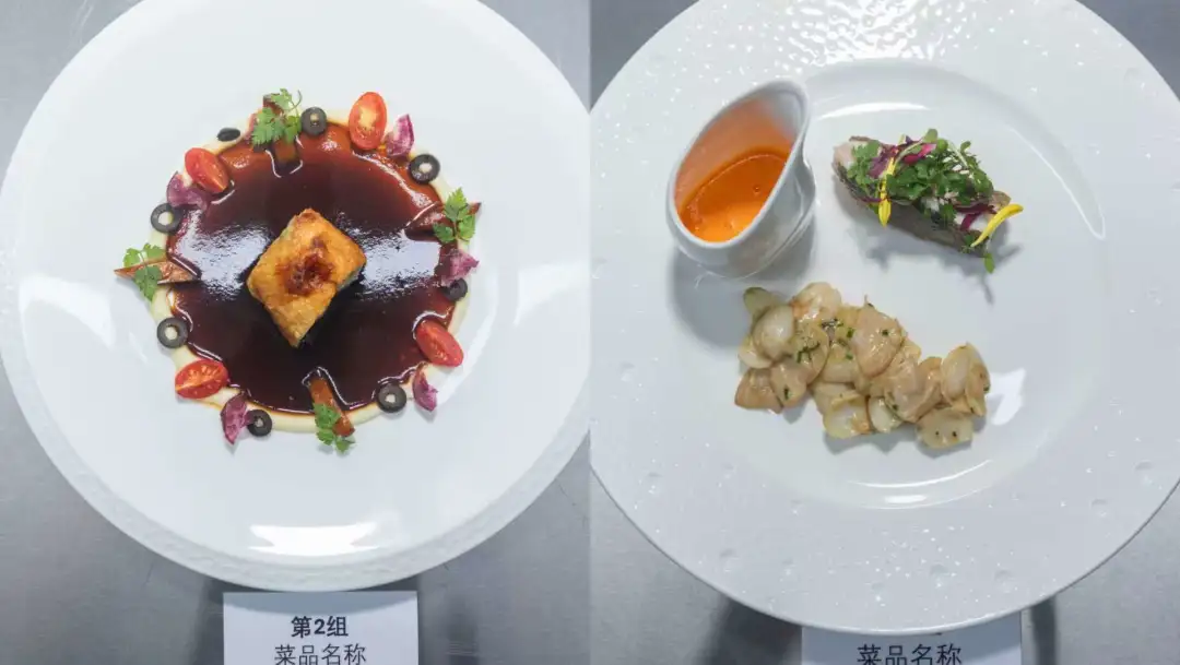 在一场既简单简约又而庄重的开幕式之后,2025年万豪新星青年厨师大赛(深圳区选拔赛)正式拉开帷幕。各参赛队伍由1名酒店主厨及2名烹饪学生组成。各队需在60分钟的限时挑战中,选手们以海鲈鱼与三黄鸡为主食材,紧扣万豪“善行360度”可持续理念,打造“低碳轻食套餐”。评委团由万豪集团深圳地区各酒店行政总厨及学校烹调工艺与营养专业西餐教师组成,从技艺精度、创意维度、营养搭配、环保实践四个维度打分,确保赛事既重专业能力,更贴合行业发展需求。
