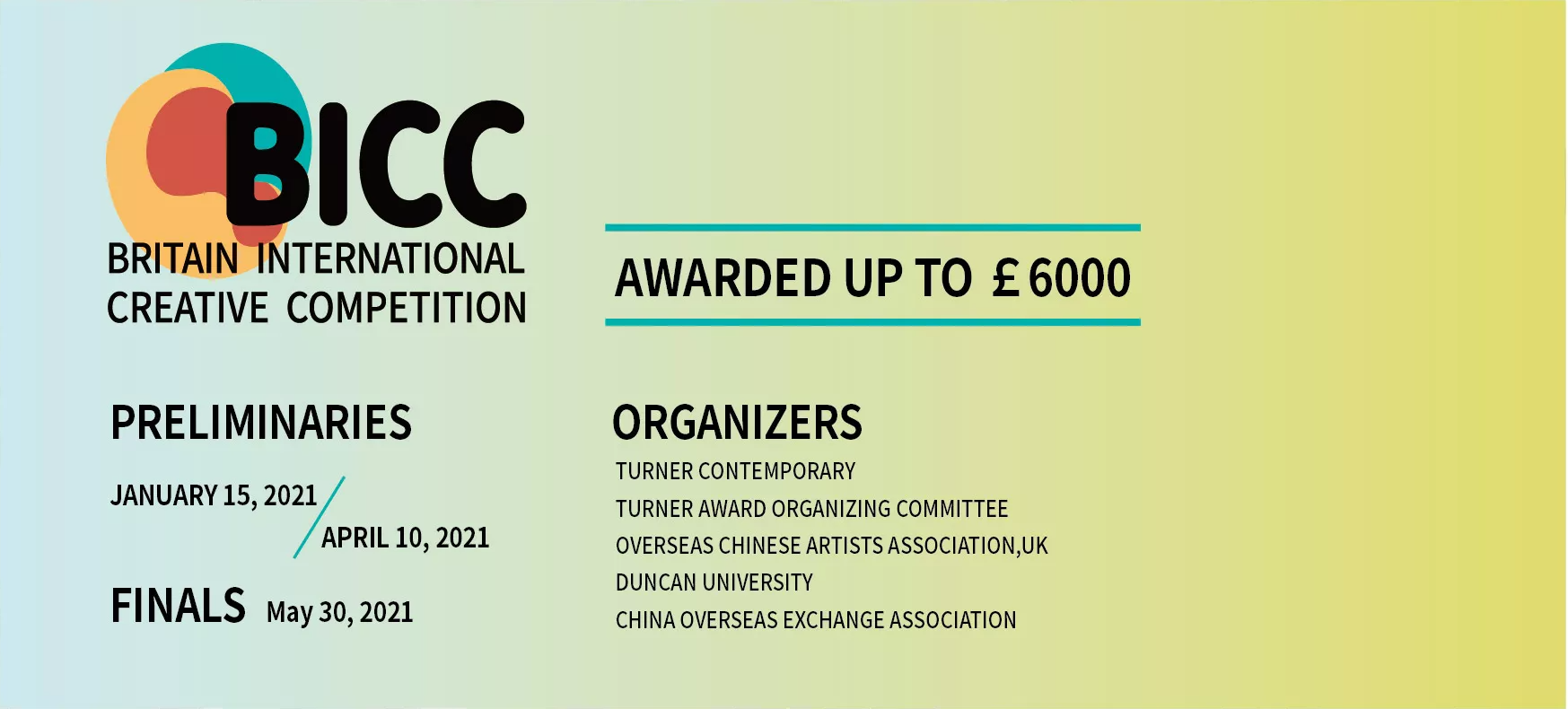 据悉,BICC中英国际创意大赛是由英国透纳当代美术馆、英国华侨华人美术家协会主办,中国海外交流协会(中国)、University of Dundee(英国)承办,国务院侨务办公室指导全国高校团委协办的一项国际性艺术设计类赛事。赛事也被欧洲设计协会BEDA所认可。此次大赛由中国、苏格兰、北爱尔兰和威尔士共四个赛区组成,吸引了包括清华大学美术学院、中国人民大学、华中科技大学、浙江大学、华南理工大学、University of Dundee、University of the Arts London、Edinburgh College of Art等众多海内外知名院校的积极参与。中国赛区此次共征集了12179件作品,超过5677人参赛,230余个高等院校或专业设计机构组织参与了此次比赛。搜狐网、设计网等众多媒体均进行了赛事宣传,阿里云提供赛事技术支持。