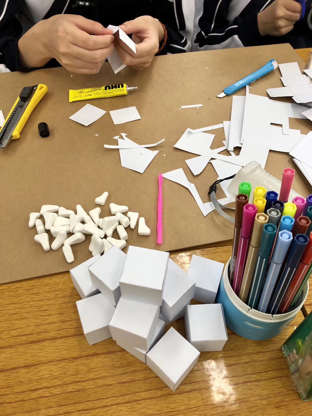 课堂上,同学们灵感绽放,天马行空,一个个别具匠心的设计背后凝聚了同学们太多汗水,把原本无趣的课堂变的多姿多彩。