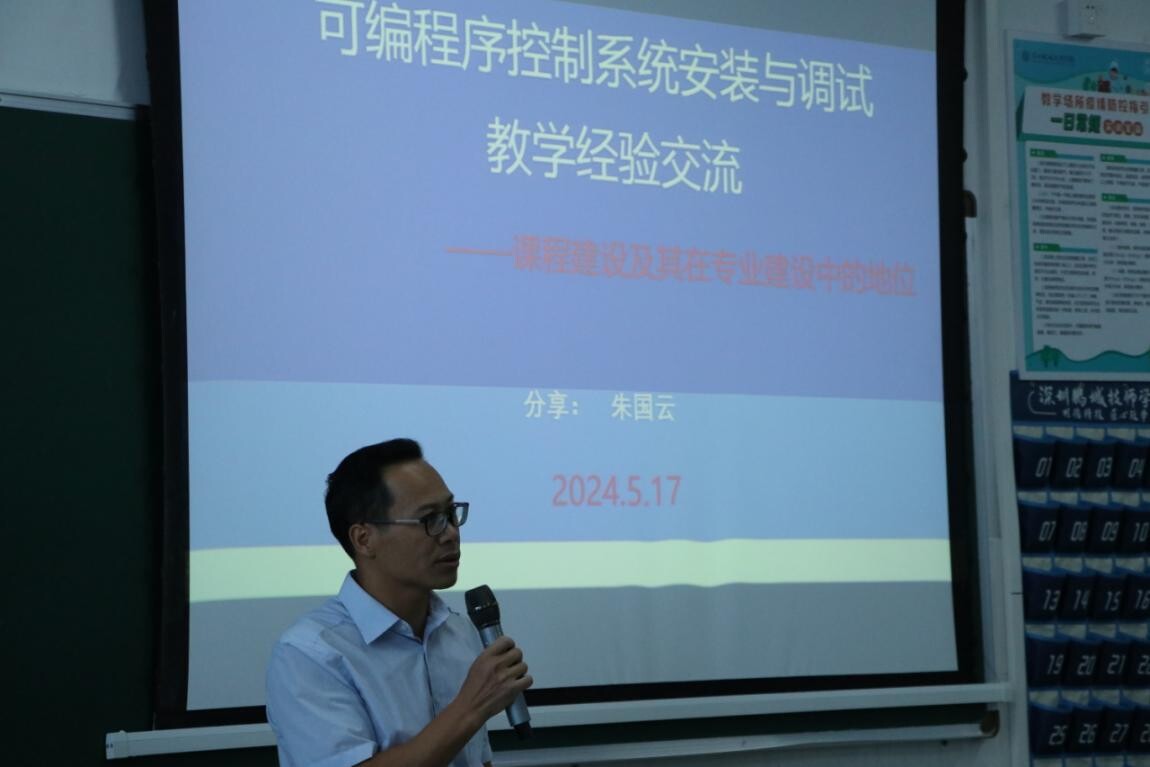 5月17日下午,先进制造学院在侨城实训楼A502室举行《可编程序控制系统安装与调试》课程教学经验交流,本次活动由机器人教研室苏立军老师、朱国云主任主讲,督导办张雅婷主任、先进制造学院周烨院长、韩曙光副院长、李熊副院长及智能技术学院李谋勋院长等50余名老师参加了活动。