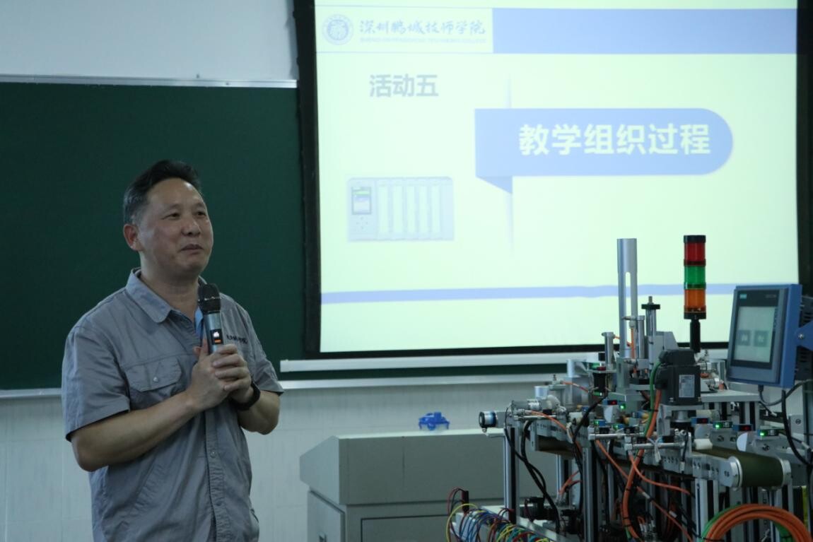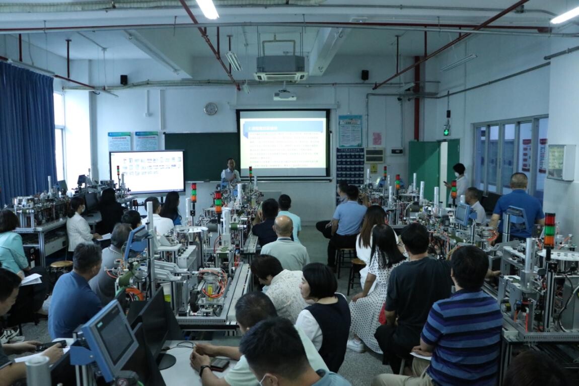 讲座上,朱国云老师分享了该课程在整个专业建设中的地位和课程建设情况。苏立军老师以《西门子可编程序控制安装与调试》课程为载体,分享了课程建设和教学实施过程中的心得体会,包括课程地位、课程内容安排、教学设计、配套实训设备升级改造、配套教学资源开发等,还重点分享了如何紧跟技术发展步伐,将企业的岗位技能需求与学校课堂教学有机融合的路径,为学校高技能人才培养与企业实际用人需求达到无缝对接做出有益探索。