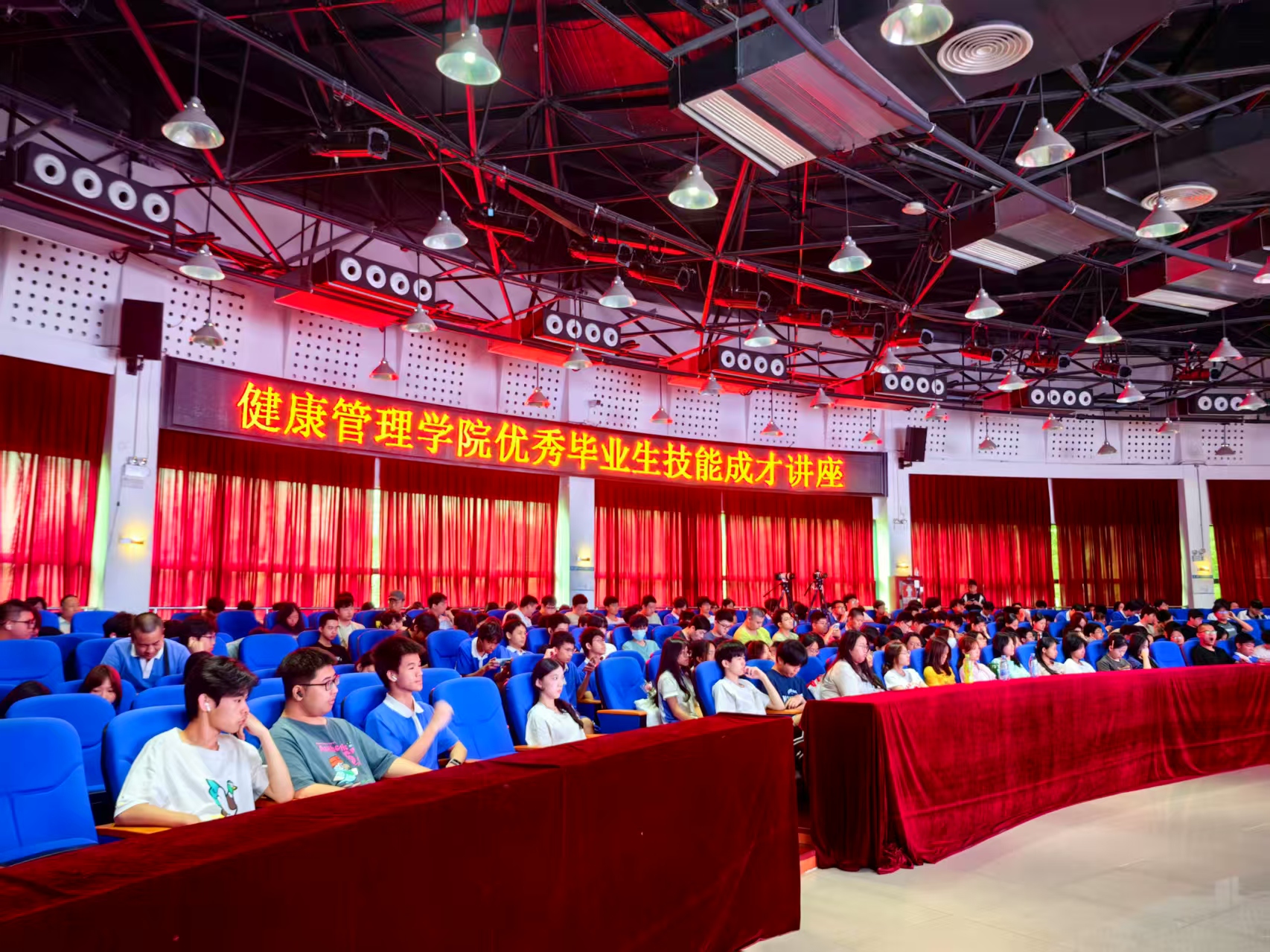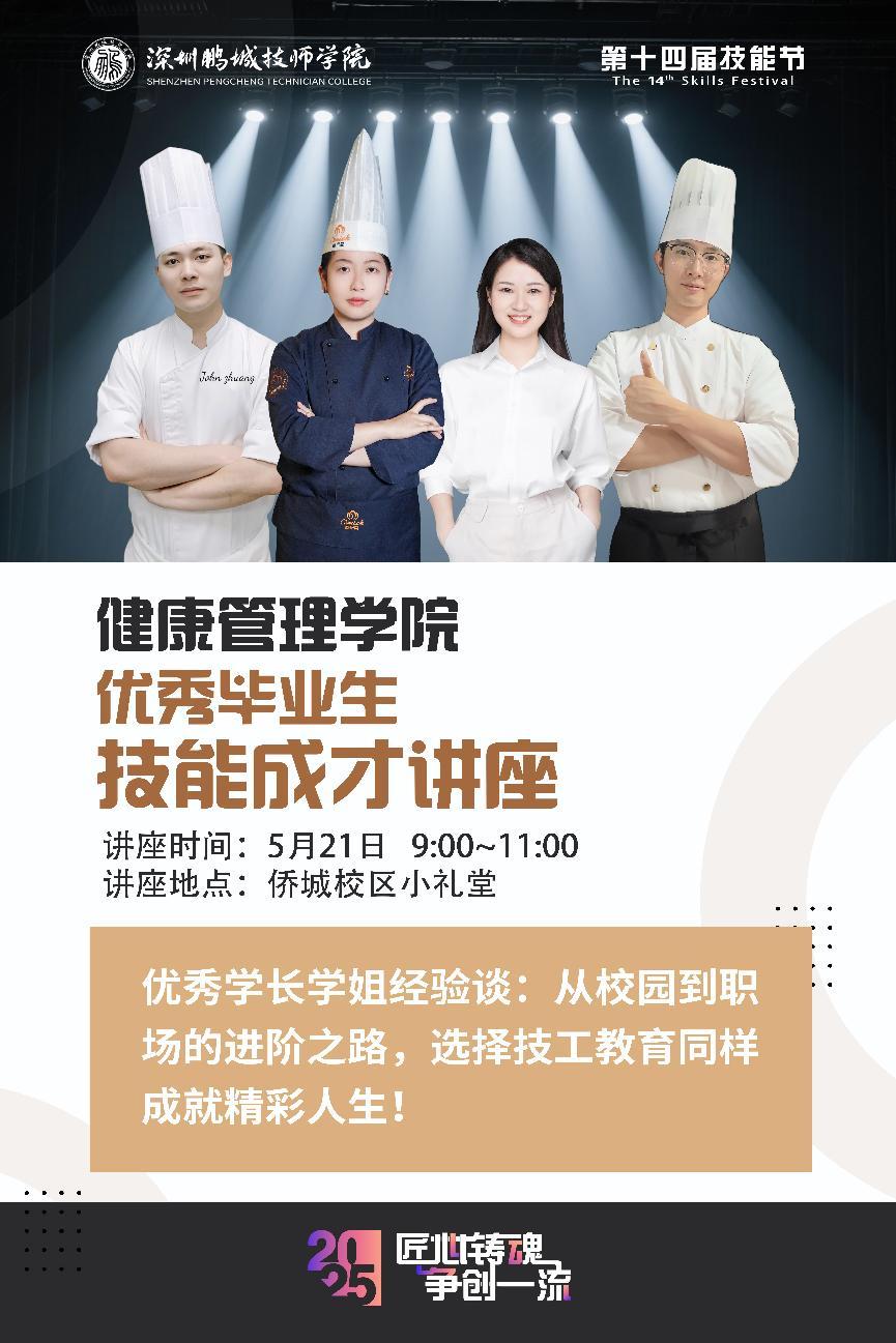 2025年5月22日,健康管理学院内洋溢着成浓厚的学术氛围和青春活力。一场以“从校园到职场:技能成才之路”为主题的优秀毕业生讲座正在热烈进行中。