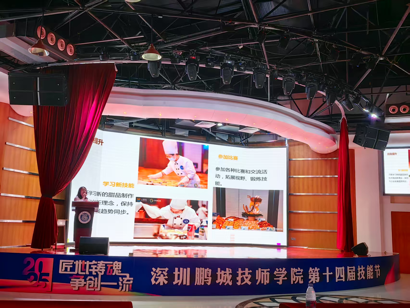 本次讲座通过邀请四位优秀毕业生——10级营养与食品工艺G5班王苹、14级中西式面点G3班庄焕发、15级中西式面点G3班张仲业和17级烹饪G3班彭倩,向学院200多名食品营养专业群的学生传递“选择技工教育,同样可以成就精彩人生”的积极信息。