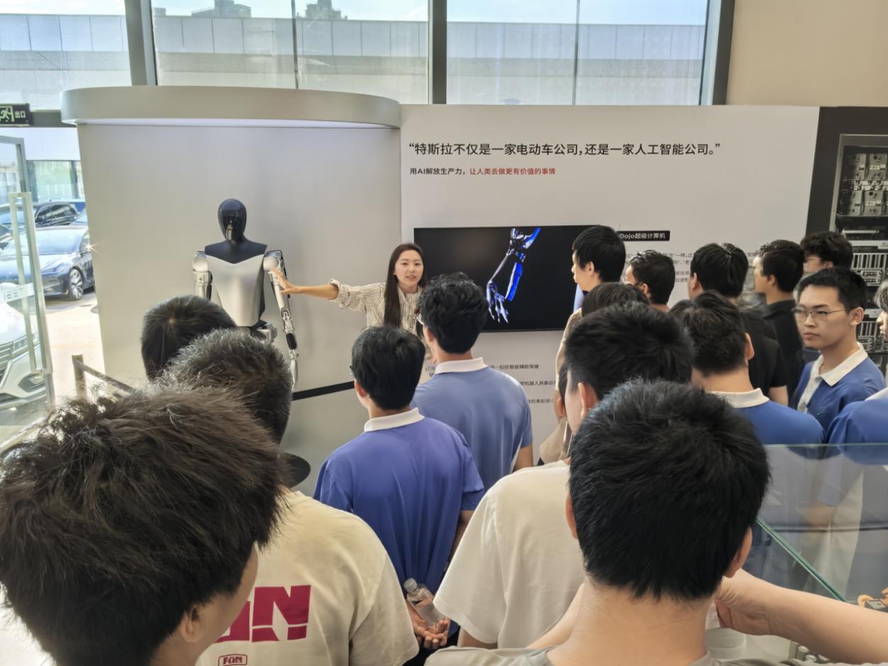 在带队老师的带领下,学生们有序开启实践行程。活动以“特斯拉科技讲堂”拉开序幕,特斯拉专业讲师围绕新能源汽车三电系统(电池、电机、电控)的核心技术原理、智能化座舱的研发逻辑展开深度讲解,结合前期《新能源汽车维护》课程理论,用真实产业案例填补理论盲区;随后的“企业发展历程与战略介绍”环节,讲师通过时间轴清晰梳理特斯拉从电池技术迭代到全球化布局的关键节点,让学生直观感受企业以技术创新驱动行业变革的路径,深刻理解“可持续能源”战略背后的产业价值。