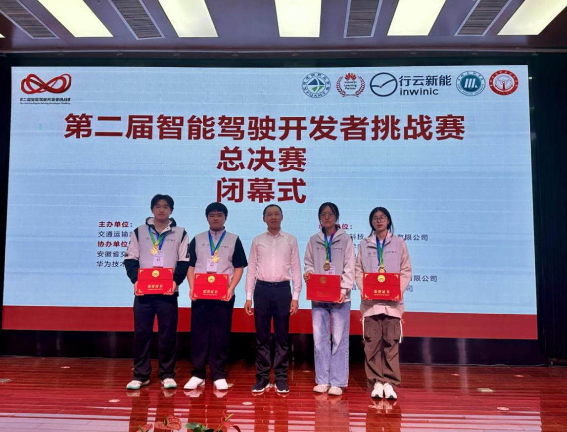 2025年10月,在交通运输部职业资格中心主办的第二届智能驾驶开发者挑战赛(华为MDC技术)全国总决赛中,师生团队共同参赛,斩获教师组一等奖1项、学生组一等奖1项及三等奖1项。