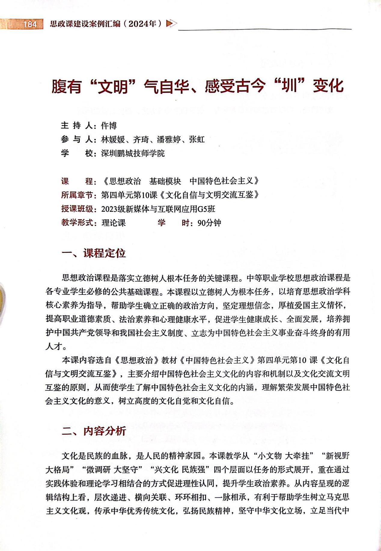 2024年广东省技工院校思政课建设案例汇编:腹有“文明”气自华、感受古今“圳”变化