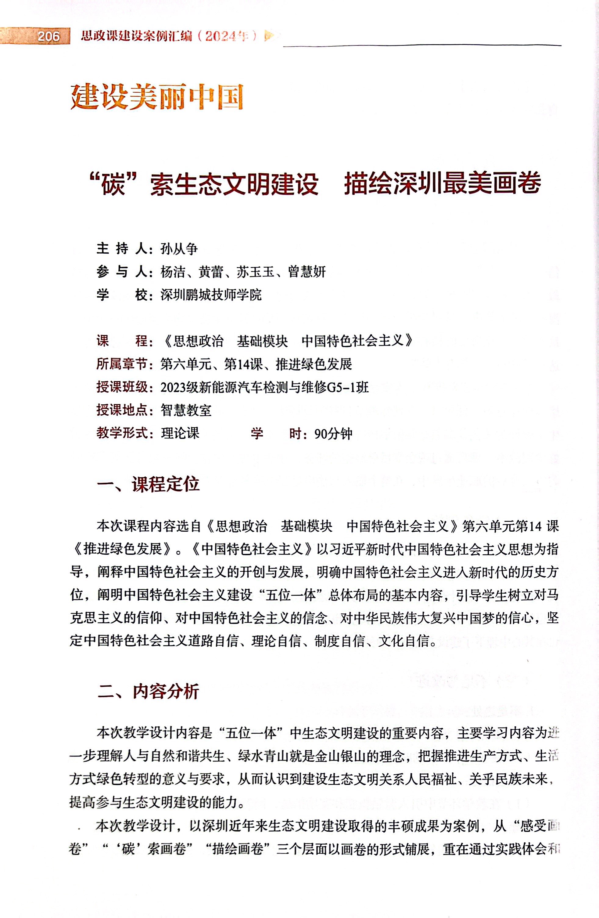 2024年广东省技工院校思政课建设案例汇编:"碳“索生态文明建设 描绘深圳最美画卷