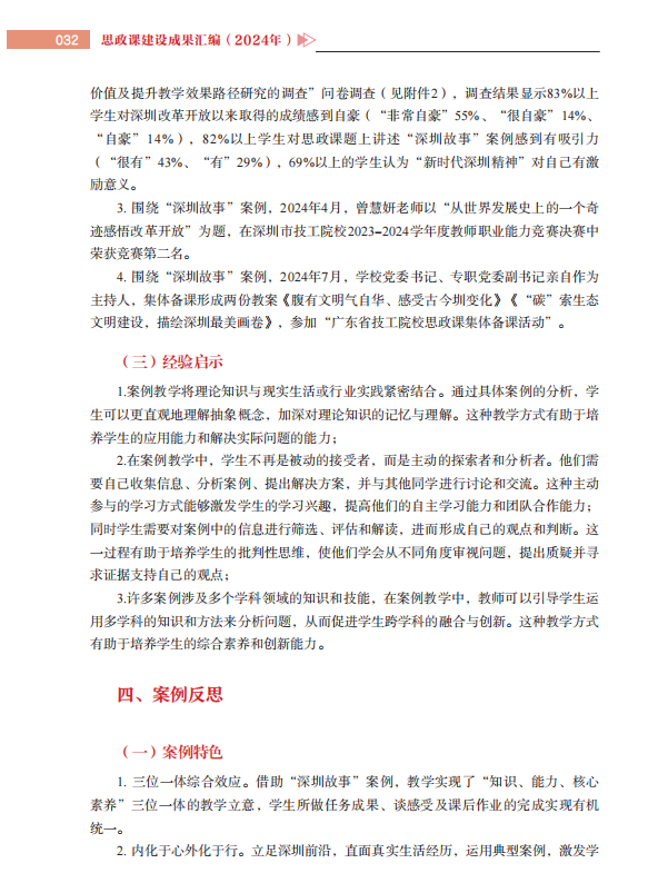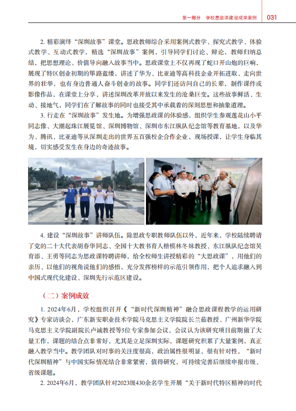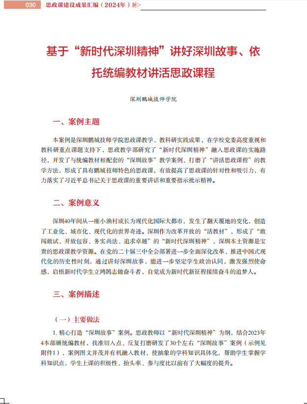 2024年广东省技工院校思政课建设案例汇编:基于“新时代深圳精神”讲好深圳故事、依托统编教材讲活思政课程